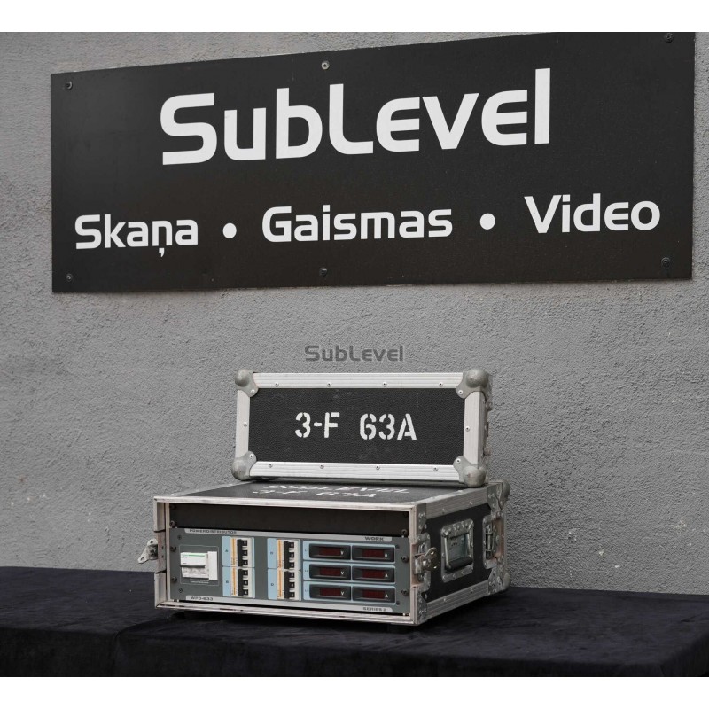 63A elektrības sadale kalpo kā galvenais enerģijas sadales punkts uz skatuves, nodrošinot jaudas tālāku sadalīšanu uz mazākām apakšstacijām vai tiešajiem patērētājiem.