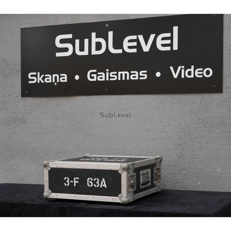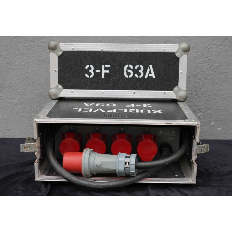 Profesionāla elektrības sadales kaste, kas sadala 63A ienākošo strāvu uz 4 neatkarīgām 32A izejām. Aprīkota ar automātslēdžiem katrai līnijai drošai ekspluatācijai. Standarta risinājums skatuves gaismu, skaņas un LED ekrānu barošanai.