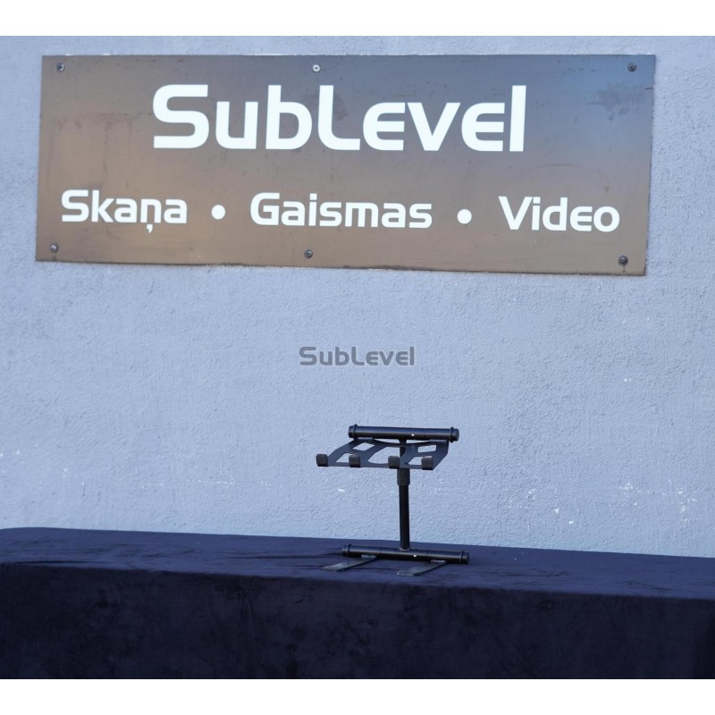 Praktisks risinājums dīdžejiem un pasākumu vadītājiem. Tas nodrošina stabilu platformu papildu tehnikai, neaizņemot vietu uz galda.
