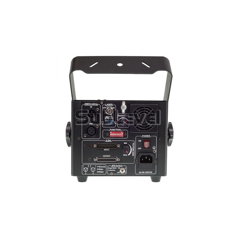 | Vadība | DMX, ILDA, Sound-to-Light, Auto |
