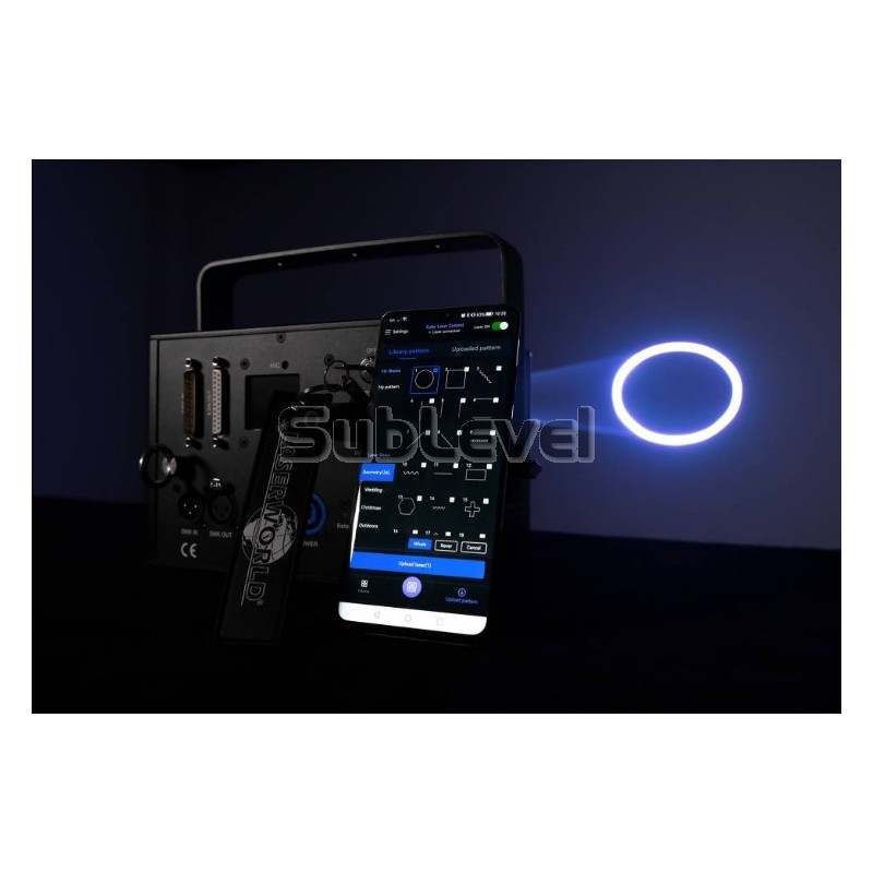 | Vadība | Mobilā lietotne, DMX, ILDA, Sound-to-Light, Auto |