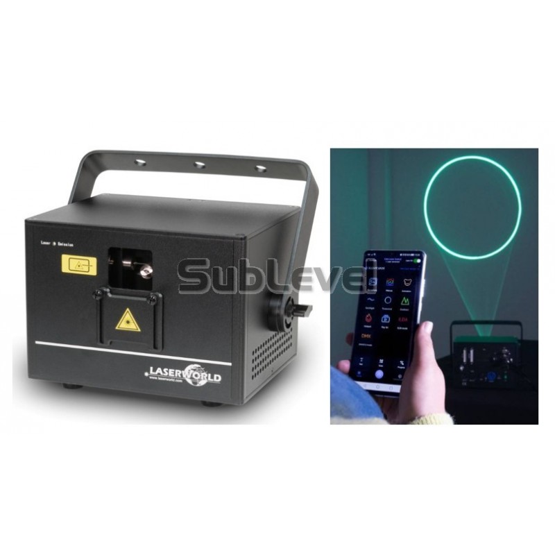 Jaudīgs 3W (3000mW) Cube 3 šova lāzeris ar iebūvētu akumulatoru un ērtu vadību tieši no viedtālruņa.
