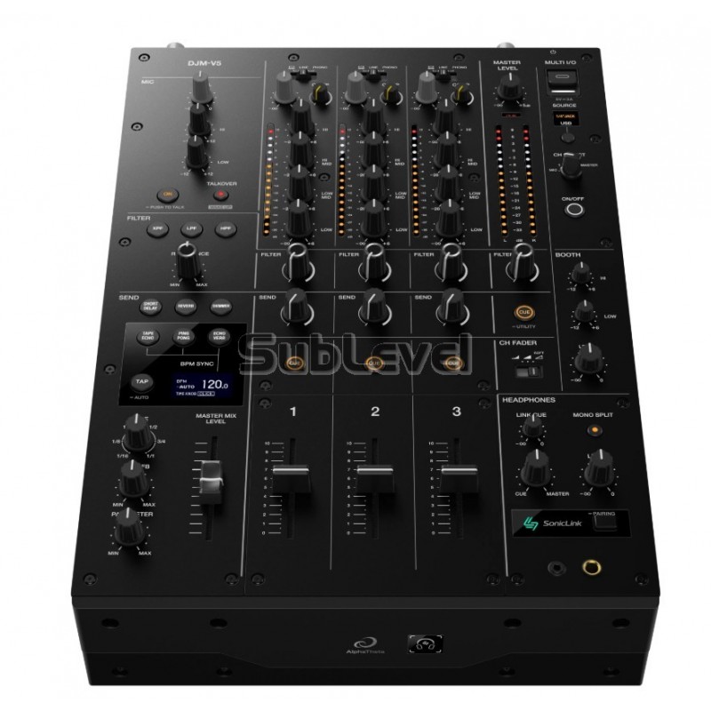 AlphaTheta DJM-V5 ir jaudīgs 3-kanālu profesionālais DJ mikseris, kas pārmanto flagmaņa DJM-V10 audio dzinēju un izcilo 4-joslu EQ. Šī pults ir aprīkota ar unikālo SonicLink bezvadu tehnoloģiju un Bluetooth ieeju, piedāvājot nepieredzētu brīvību un radošās iespējas kompaktā, klubiem gatavā formātā.